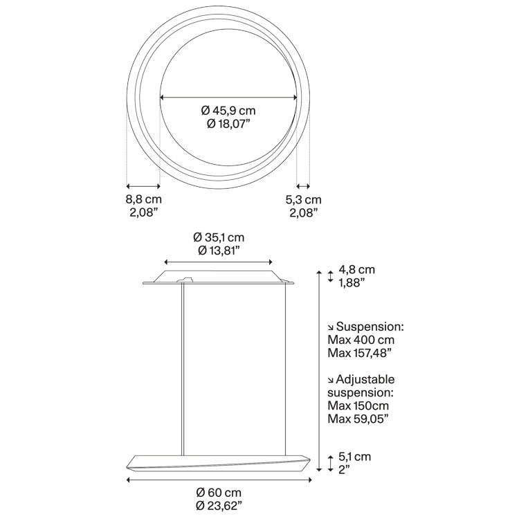 Tidal LED 33W 6120lm 2700K CRI>90, hämardatav DALI, üles/alla valgusega rippvalgusti, matt šampanja, laerosett valge