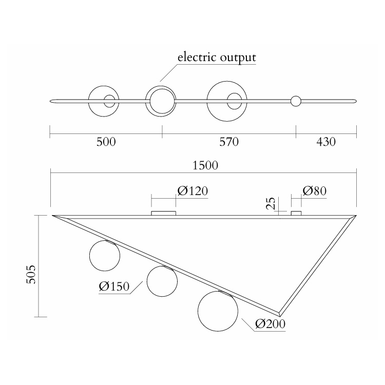 1500 x 200 x h505 mm