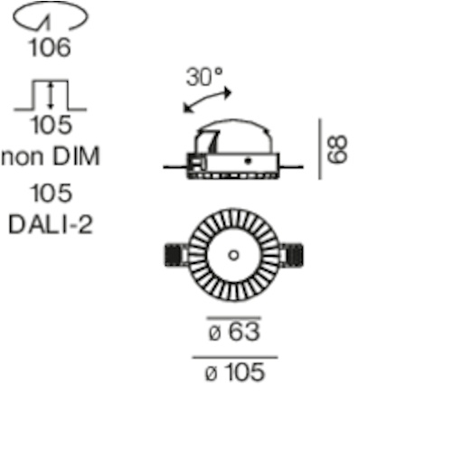 SPIO 60 adjustable LED 14W 685lm 1050mA 3000K CRI>90 44°, hämardatav DALI, süvisvalgusti, valge