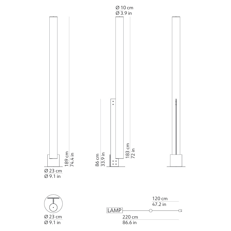 Model T LED 65W 6600lm 2700K CRI>90, hämardatav, põrandavalgusti, mitmevärviline